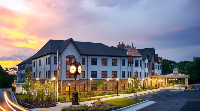 GES provided MEP&FP engineering for the design of a new 130,000 sf, 120-unit senior living center consisting of three stories above grade and a below grade parking garage. Amenities include a common full-service dining room, parlor, music room, bistro, pub, theater, lounges, multi-purpose space and a variety of unit types and sizes for specialized care and service options.